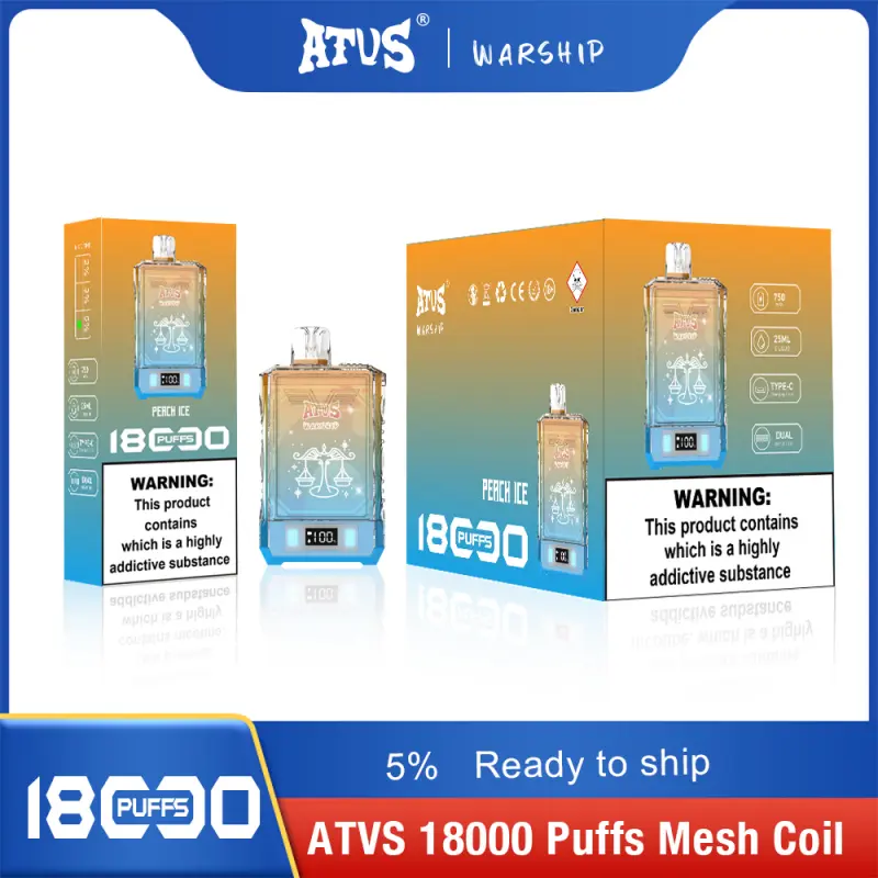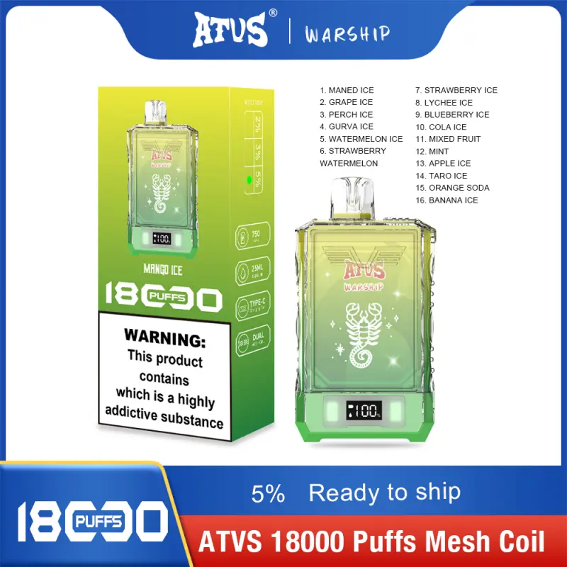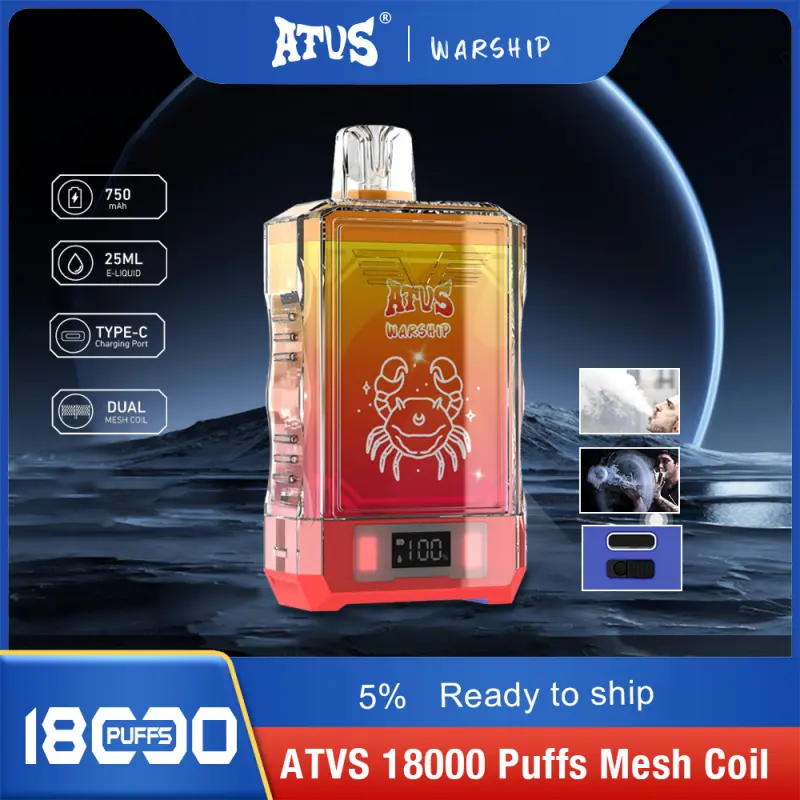 Den ATVS Warship 18000 puffs omdefinerer engangsdampning med høj kapacitet, moderne teknologi og kraftig smagsafgivelse. Den er designet til seriøse dampere og leverer utrolige 18.000 pust, understøttet af et 750 mAh genopladeligt batteri med Type-C-hurtigopladning.