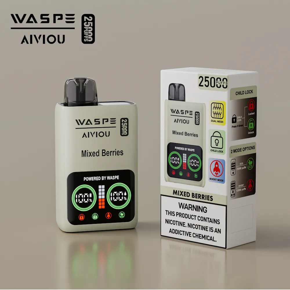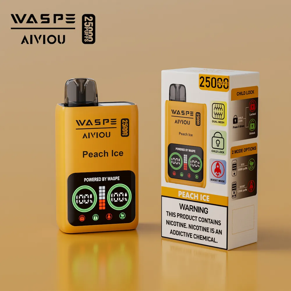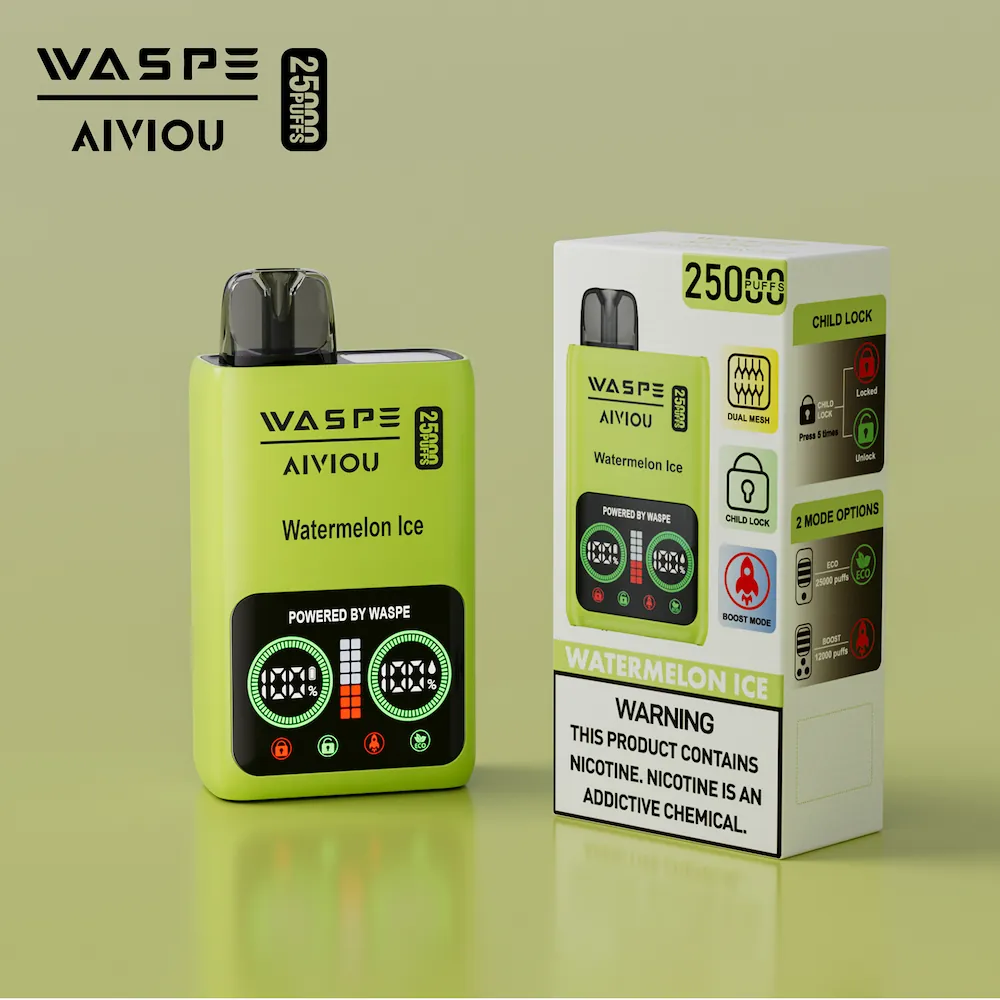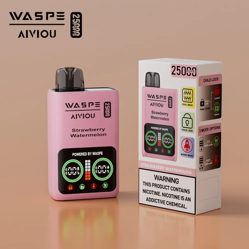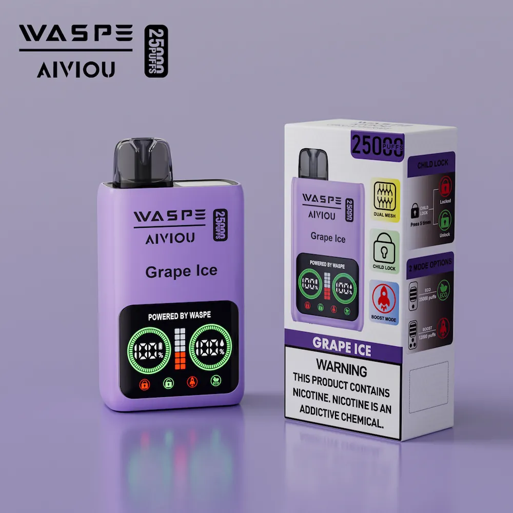 Diseñado para ofrecer rendimiento y seguridad, el WASPE Vapeador desechable de 25.000 caladas con pantalla LCD inteligente y sistema de bloqueo para niños, ideal para usuarios adultos responsables. Con 25ml de e-líquido y una batería de alta capacidad de 650mAh, este dispositivo proporciona hasta 25.000 caladas. La doble bobina de malla garantiza una producción de vapor abundante y un sabor mejorado en cada calada. Recargable a través del puerto Type-C y disponible en las concentraciones de nicotina 0%, 2% y 5%, es perfecto tanto para vapeadores ocasionales como experimentados.