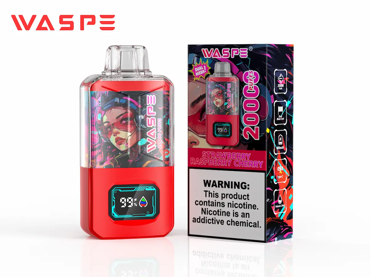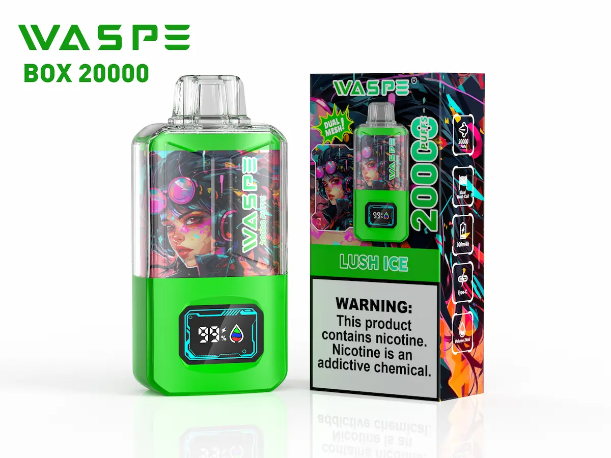 WASPE 20000 is een krachtpatser voor eenmalig gebruik, ontworpen voor serieuze gebruikers, die tot 20.000 trekjes levert met een enorme 24ml e-liquid tank. Hij is voorzien van dubbele mesh coils voor een intensere smaak en damp, plus een LCD-scherm dat het aantal trekjes en de batterijstatus in realtime weergeeft. Met snelle Type-C opladen en een 900mAh batterij, houdt het gelijke tred met uw levensstijl. Kies uw nicotineniveau - van 0% tot 5% - voor een echt aangepaste vaping ervaring.