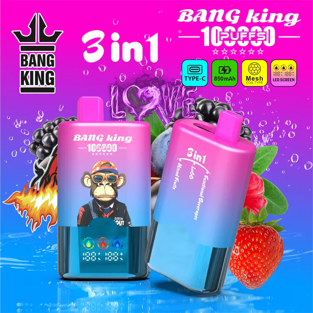 Bang King Triple 100K Puffs 3-in-1 Disposable Vape with Smart LCD Screen