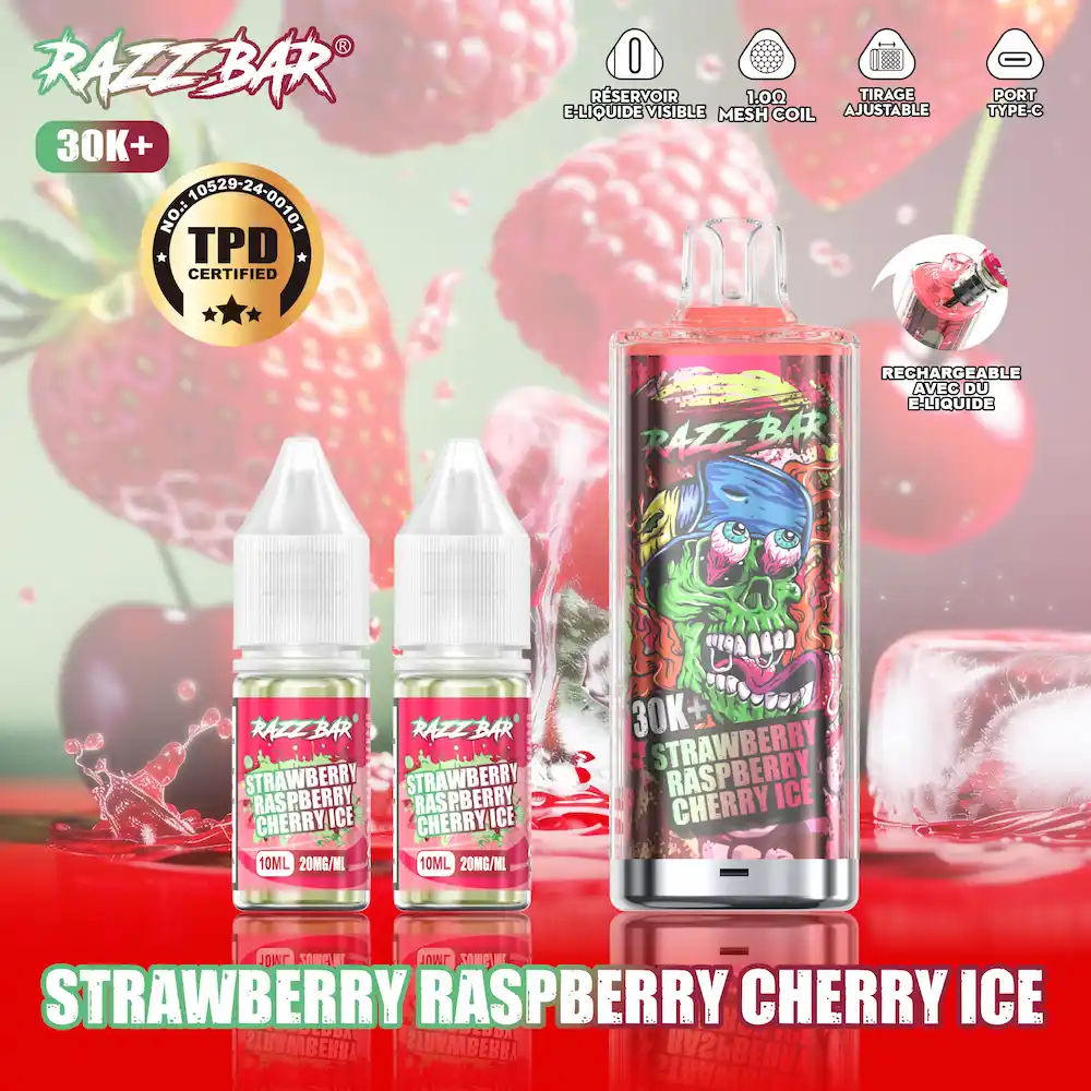 The Razz Bar 30,000 (30K+) Puffs Refill Vape is designed for users who seek maximum lifespan, stable flavor, and fast EU delivery.